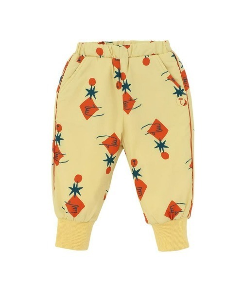 季節の変わり目にピッタリなフリース素材のパンツ。ズボン全体にはユニークなモチーフが配されています。パンツのサイドにはラインが入っていてデザインのポイントになっています。裾はリブ仕様の為、着脱しやすく動きやすい商品です。
