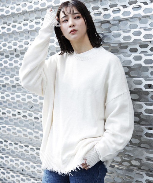 【 LULU & ARNIE / ルルアンドアーニー 】 オーバーサイズ クルーネック ダメージ ニット セーター Air Tokyoからセレクトしたクルーネックダメージニットセーター ■カラー: 着用しやすい 『ブラウン』『アイボリー』の3色を起用 ■サイズ: サイズはM.Lの2サイズ展開 ■ユニセックス: メンズ、レディース共活躍できるジェンダーレス・ユニセックスアイテムです ■素材: アクリル55%・コットン45% 袖口と裾そして襟ぐりの3ヵ所に施されたダメージ加工がアクセントになっていて これからの季節一枚有れば活躍できる事間違い無しです ジャケットコートとのレイヤード・パンツ等・スカート等に合わせても間違いなし 分厚過ぎないニットなので前のみボトム類にインするコーデも可能です シンプルなデザインのワントーンで、 袖口と裾のみのダメージ加工なので合わせやすい1点 オーバーサイズのルーズシルエットになっており、 着心地もよくコーディネートしやすいアイテムです 【 LULU & ARNIE / ルルアンドアーニー 】 SIMPLE&BASICをテーマに世界中から旬をセレクト。 時々の感性を取り入れたオリジナルブランドを中心とした、ミクスチャースタイルを提案します。
