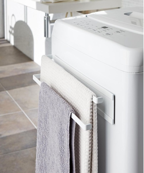 ---干す場所に困るバスタオルやバスマットなどを洗濯機横に強力マグネットでスリムに収納--- 洗濯機横に強力マグネットでしっかりと固定できるため、バスタオルやフェイスタオルをスリムに収納できます。バーは2段式になっており、横からサッとかけることができて取り出しも楽々。 バスマットや洗濯用の小物掛けにも最適です。 本体重量:約1000g耐荷重:各バー約1kg 対応サイズ:幅:39cm以下 サイズ:約W40×D8.5×H8cm 【tower/タワー】 山崎実業の人気シリーズ「tower」。インテリアになじむシンプルでスタイリッシュなデザインと、便利さを兼ね備えた商品群。使いやすさが話題で毎日の生活をより快適にしてくれるシリーズです。