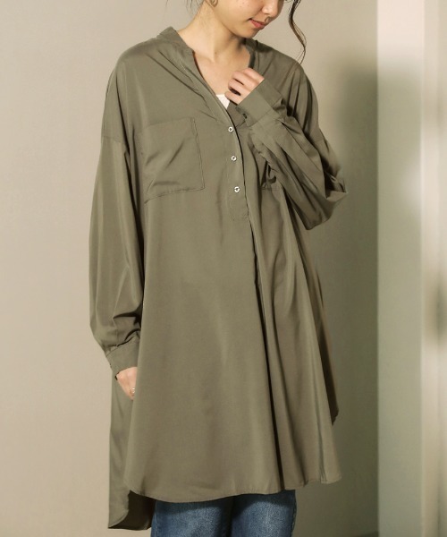 ボリュームたっぷりのシルエットにヌケ感をプラスする、深めのスキッパーネックをデザインしたチュニック。落ち感のあるドレーピーなポリエステルベース素材。女性らしい雰囲気もしっかりキープしています。★商品のお気に入り登録 登録すると、完売しても再入荷時に通知を受け取ることができます。 ほかにもお得な特典があるかもしれません♪ ★ブランドのお気に入り登録 新商品や再入荷などの情報を受け取ることができますので、是非ご登録ください♪