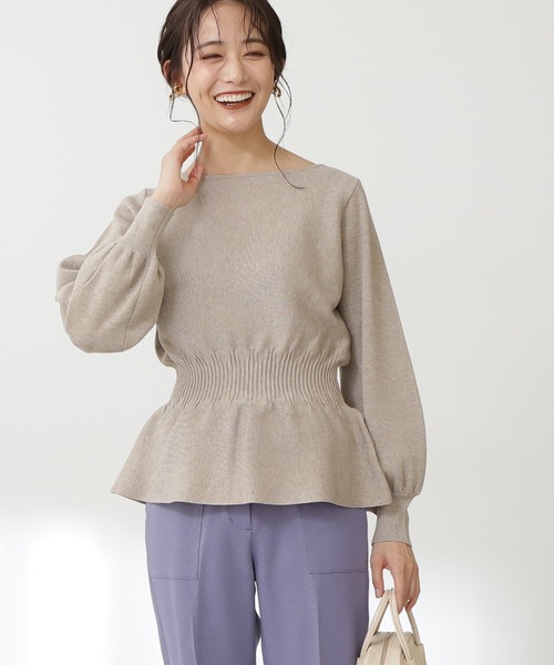 細かいディテールでウエストをシェイプしたペプラムニット。着用したときに自然とウエストがシェイプされるデザインです。ニット素材や腰まわりをカバーするペプラムシルエットで着心地も抜群です。ナローやタイトスカートにもパンツスタイルにも合う丈感です。