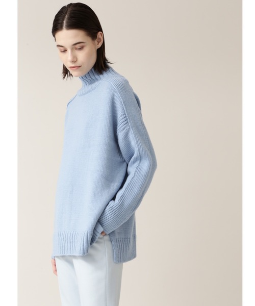 編み目の立ったゆったりシルエットのボトルネックニットです。 梳毛を本数取りし、1本のコード糸に加工。ロープのような形状になり、編むと目がきれいに立ちます。 デザイン大きめシルエットのボトルネックプルオーバー。前はセットイン、後ろはドルマンスリーブで袖に変化を付けたデザインになっています。肩の総針切り替えもポイント。