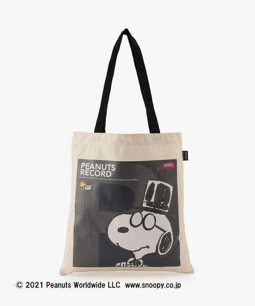 レコードジャケットを彷彿とさせるユニークなデザインが目を引くスヌーピーのトートバッグです。「A CUP OF MUSIC」をテーマにしたPEANUTSとアフタヌーンティーとの特別なコラボレーションアイテム。A4サイズの書類などを入れられる縦長のシルエットを採用しました。肩に掛けやすい長めの持ち手を備えているので、移動の際も楽ちんです。マチがないのでかさばりにくく、メインバッグとしてだけでなくサブバッグとしても重宝します。白と黒を基調としたモノトーンのシンプルなデザインは普段の着こなしにもプラスしやすく、大人の方でも違和感なくお使いいただけます。スヌーピー好きのご友人へのプレゼントにも好適です。 *お洗濯はお避けください。 *この製品は素材の特性上、多少のネップ(繊維の小さなかたまり)や織りムラ、色ムラなどがあります。*1点ごとに柄の出方が違うことがあります。