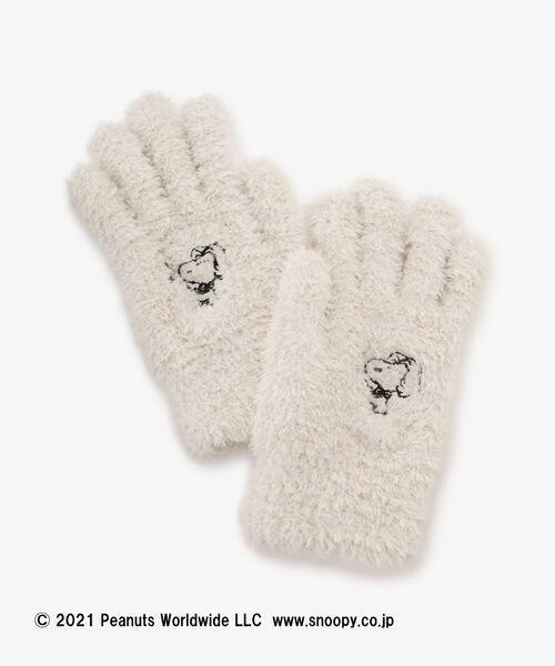 つけたままで細かな作業ができるユビデルグローブです。お得意顔で指揮者に扮するスヌーピーや五線譜を持ったウッドストックが、手元でチャーミングな存在感を放ちます。ふわふわモコモコでやわらかく、手の全体をやさしく包み込まれるようなつけ心地。指先に切り込みが入っているので、スマートフォンの操作、お財布から小銭の出し入れなど動作のたびに外さなくても良いデザインです。作業が済んだら切り込みを閉じるだけで元のあたたかさに。装いに溶け込みやすいカラーをセレクトしているので、デイリーにお使いいただけます。お出かけだけでなく、冬に冷え込む室内での在宅ワークや読書などさまざまなシーンに寄り添います。*1点ごとに柄の出方が違うことがあります。