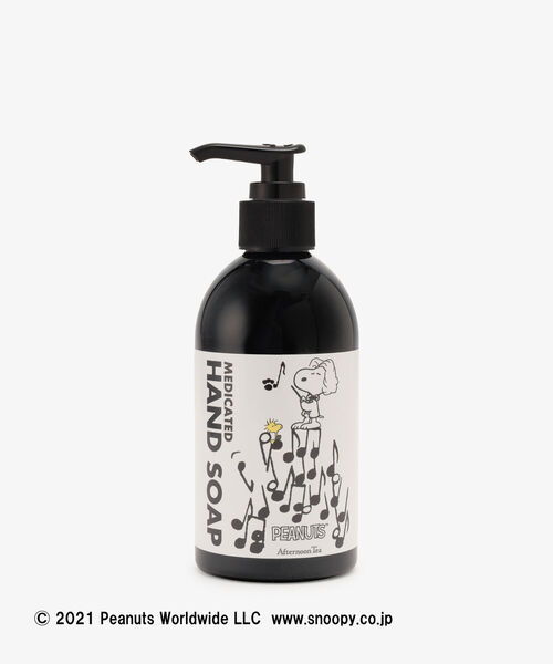 殺菌消毒に加えて保湿ができる植物性洗浄成分配合の薬用ハンドソープです。手洗いの時間がもっと楽しくなりそうな、指揮者に扮するスヌーピーを描いた「PEANUTS」デザイン。どなたにも合うスタンダードなせっけんの香りをセレクトしました。石油系界面活性剤フリー、パラベンフリー、アルコールフリーと、やさしい使い心地で毎日の手洗いも安心。殺菌、消毒と同時に保湿をするので、手荒れもしにくく特に乾燥しやすい寒い季節の使用に適しています。洗面台に置いておくだけでも癒しの空間を作り出してくれそうな見た目にも注目したいアイテム。 *本品は食べられません。