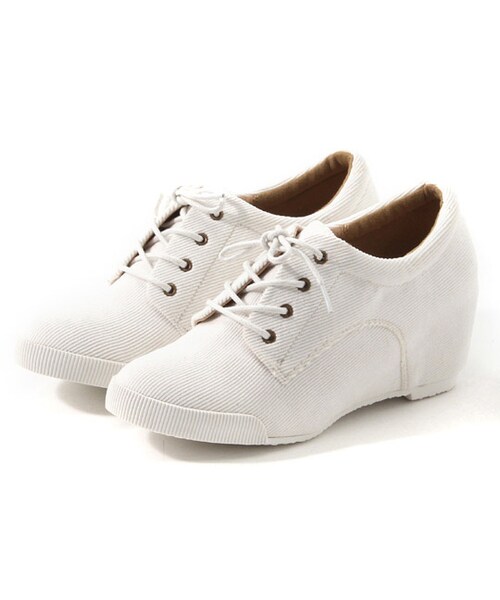 細畝のきれいな素材感を活かしたソリッドカラーのシンプルなデザインが爽やかなスニーカーです。インヒール仕様で高さをもたせているので、すらりとした脚長シルエットを演出してくれるのがうれしいポイント。デイリーの幅広い着こなしに気負いなく投入できる1足です。