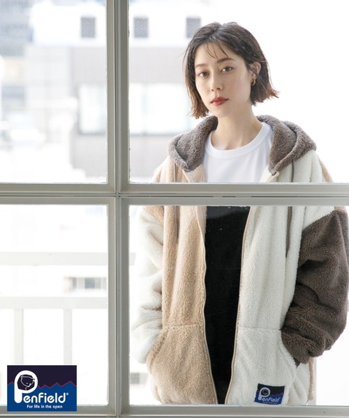 penfield/ペンフィールド × Koe コラボレーションアイテムが発売。 カラー配色がポイントのボアフーディージャケット。柔らかなボア素材を使用しているので、気軽に羽織っていただけます。大きめな作りで、中にスウェットやパーカーを着てもごわつきにくいのが嬉しいポイント◎ デニムと合わせてカジュアルはもちろん、ワンピースと合わせたMIXスタイルもおすすめです♪ ・WIND PROOF(防風)機能 防風効果のある特殊フィルムを使用。冷たい風を通しにくく より温かい着心地を実現したアイテムです。 【penfield/ペンフィールド】 「ペンフィールド」ブランドは、1975年「ファッションとファンクションの両立」をコンセプトに、米国ハドソンで誕生しました。ブランド創設当初より、モールデンミルズ社が開発したポーラフリースを使用するなど、先進性のある製品を提供してまいりました。その精神は、今も変わらずに創業時から先進性=「レガシー」を表現しながら、現代社会の生活に最適化された実用性、機能性を備えアップデートしたプロダクトを作り続けています。 ● koe ● (コエ) 「New Basic For New Culture」をコンセプトとした、 新しいライフスタイルブランドです。 地球環境などあらゆるものの「声」を傾聴し、常に変化し続ける「New Basic」としての ファッション、体験を生み出すことを目指しています。 ▼ 商品のお気に入り登録がおすすめです ▼ 商品ページ内のハートマークをクリック。完売時の再入荷や、最後の1点の通知、コーディネート画像がアップされたとき、お得なお値下げの際の通知を受ける事ができます