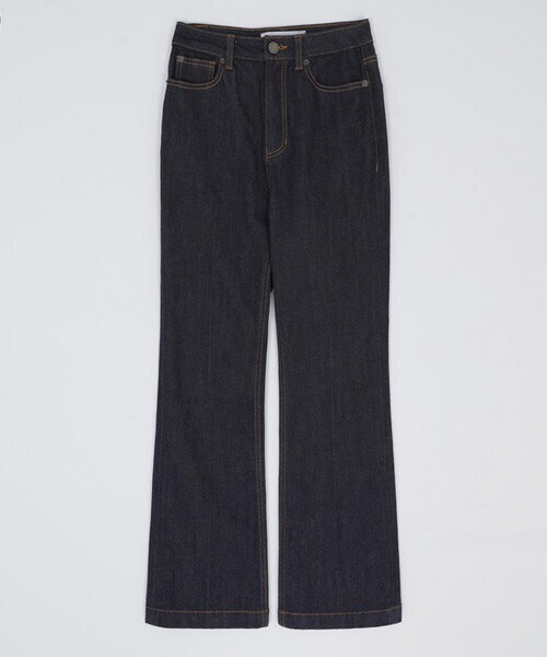 ソフトな肌触りと色移りするのを最小限に抑えるため ノーマルウォッシング20分技法を追加しました。 ボリューム感のある素材でウエストベルトにも伸縮性を持たせて ウエスト部分をやさしく包み込むので、部分的に 体型カバーの効果が感じられます。 脚長効果のあるロングフレアフィットで着用した瞬間からスリムに、 脚が長く見える魔法を感じることができます。