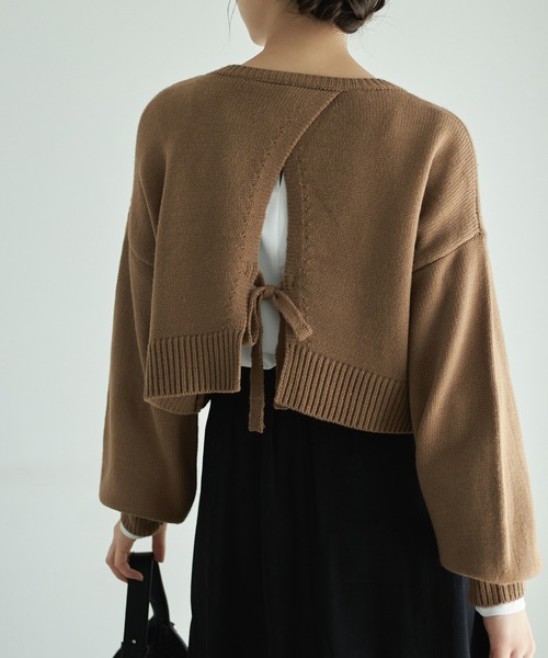 *22AWバックシャンなデザインが目を惹くクロップドニット大胆に入ったスリットにリボンをあしらった、バックデザインが印象的なニット。ゆったりとしたシルエットに、クロップド丈のバランスがこなれ感を演出します。短めの着丈なので、ハイウエストボトムやワンピースとも相性良く合わせられるアイテムです。▼ATTENTION▼※摩擦や汗、雨等で濡れた場合、他の衣料に色移りする場合がございますのでご注意下さい。※撮影時のライティング、PCやスマートフォンの環境により写真の色味が実際の商品と異なって見える場合がございます。ご了承の上お買い求め下さいませ。※モデル着用画像は実際の色と多少異なる場合がございますのでマネキン画像をご確認ください。※製造過程や素材により染料等の臭いが強い場合がございます。臭いが気になる場合は一度陰干しされてからご使用下さい。※着用衣装はすべて参考商品です。――――――――――《お買い物をもっと楽しむために!》■商品のお気に入り登録お気に入りの商品やカラーを登録していただくと値下げ・在庫1点・完売後の再入荷などの通知を随時受け取ることができます。■ブランドのお気に入り登録新商品の発売や再入荷、セール、クーポン配布などEditSheenのお得な情報を受け取ることができます。