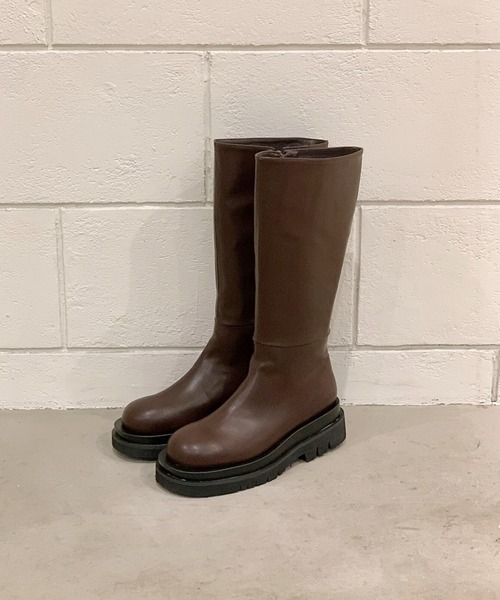”今年っぽい”の代表格ゴツめロングブーツ ・見た目からは想像のできない軽さ ・さりげない厚底で足長効果UP ・長い丈でこっそり防寒効果も◎ 【デザイン】 しっかりボリュームはありつつも、可愛さを残したフォルムのロングブーツ。見た目の存在感に反して、驚くほどの軽さと安定感のあるソールで、長時間の使用にも適しています。また、ロングなので普通のブーツよりもさりげなく防寒してくれるのも嬉しいところ。ふくらはぎ部分はどの骨格の人にも合いやすいシルエットなので、ロングブーツを履いたことのない方にこそ履いて欲しい一足です。 【コーディネート】 絶対的なバランスの「ミニスカート×ロングブーツ」「スキニーパンツ×ロングブーツ」はもちろん、甘めワンピース一枚に合わせて少し大人なコーディネートもオススメ。 【デザイン】 【お買いものをよりお楽しみいただく為に!!】 ▼商品のお気に入り登録(ハートマークをクリック) お気に入りアイテムの完売カラーの再入荷通知や、ラスト1点の通知、セールの通知も受け取ることができます。 ▼ブランドのお気に入り登録 新商品や再入荷など、クーポン配布などのお得な情報を受け取ることができます。