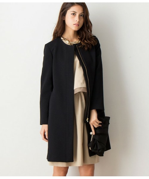秋から羽織り感覚で着られる、ジャージー素材のノーカラーコートです。上品でストレッチ性があり動きやすいのが嬉しい。フロントのジップ使いがデザインのポイントです。脇にダーツを入れてスタイルが良く見える様、立体パターンを採用。通勤はきれいめに、オフにはパーカーのフードを出したカジュアルなコーデもおすすめ。【5DAYS!J'aDoReJUNONLINEWPOINTCAMPAIGN】2014.10.15(WED)17:00まで通常よりポイントが2倍!さらに今なら代引き手数料無料!※商品画面でのポイント表記はレギュラー会員での表記となっております。※ポイント付与数は、会員ランクごとに異なります。ランクにそった獲得ポイントは、カート内にてご確認いただけます。※ランクごとのポイント付与率はこちら※キャンペーン期間中のため、店頭でご利用された場合と異なりますのでご了承ください。※期間前からログイン状態を継続していた場合、キャンペーンが適用されません。キャンペーン期間中に再ログインを行い、付与ポイント数をご確認の上ご注文ください。