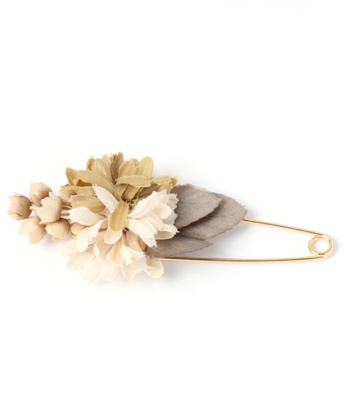 ーーーストールピンと組み合わせたナチュラルな印象がかわいいストールピン。お花やリーフのモチーフを組み合わせてコサージュに仕上げました。ーーーストールはもちろん、コサージュとしてお洋服やバッグなどにつけていただけます。