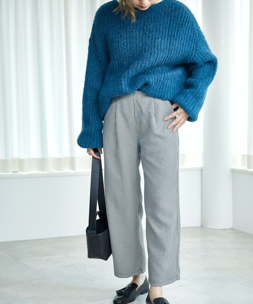 ワンタックチェックパンツ細かいチェック柄で遊びとスタイルアップ効果を出しつつ、ちょうどいいワイド感がトレンド感を出しつつコーデの幅を広げてくれる1枚。バックウエストはゴム仕様で着脱もしやすく、リラックスした穿き心地。夏なら、タンクトップやTシャツをタックインで合わせて。ビックシルエットTシャツやワイドシルエットTシャツなら、メンズライクなスタイリングになります。フレンチスリーブTシャツとタイトシルエットTを合わせれば、フェミニンなラフコーデにも。足元は、スクエアトゥミュールやバブーシュサンダルで、シックに引き締めるのがポイントです。ニットやトレーナーでカジュアルなコーディネートや、フラットシューズやブラウスでキレイめなコーディネートにもお使いいただけ、着回し力抜群です。ファー素材やボア素材の小物類と合わせてガーリーなコーディネートにも合わせられ、チェスターコートやボアコートを合わせれば冬らしいスタイリングに仕上がります。お出かけやお買い物などに大活躍すること間違いなしです。【色展開】・ブラック(黒 黒色)コーデを引き締める、モードなカラー。・ベージュレディライクな印象を与える、ラテカラー。・ブラウン(茶 茶色)落ち着いた色合いのシックなカラー。【サイズ展開】・Мサイズ【お買い物をもっとお楽しみいただくために】▼商品のお気に入り登録▼完売カラーの再入荷通知や、人気アイテムのラスト1点通知、プライスダウンしたセール通知も受け取ることができます。▼ブランドのお気に入り登録▼ECRIRE(エクリール)レディース新作アイテムや再入荷等、いち早くブランドのお得な情報を受け取ることができます。