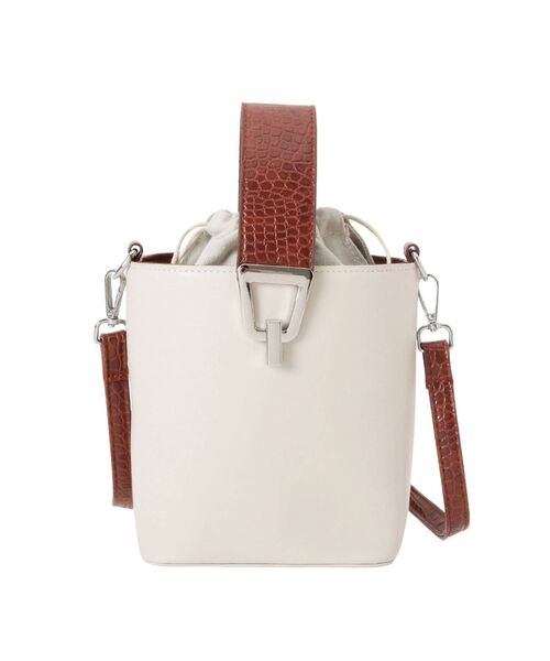 持ち手のカラーが配色になっておりシンプルなスタイルのワンポイントに。持ち手部分は型押しの柄でヴィンテージなムードを後押し。