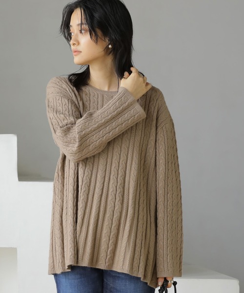 2021Autumn and Winter ふわっと広がるAラインのフレアシルエットがフェミニンなプルオーバー。ケーブルニットの温かみのある表情がシーズンムードを高めてくれる1枚です。よりディテールを引き立てるすっきりとしたネックラインもポイント。ボトムスを選ばずコーデ可能な、大人女子にもおすすめのアイテムです。How to care(お手入れ方法)・洗濯:可(30℃限度/洗濯ネット使用)・漂白:酸素系OK、塩素系NG・タンブル乾燥:不可・自然乾燥:日陰平干し・アイロン:中温150℃まで(あて布使用)・ドライクリーニング:石油系溶剤●AMERICAN HOLIC ● (アメリカンホリック)大人の女性の毎日を軽やかで豊かにするブランド。カジュアルなのにオシャレ、コーディネートも楽。ONにもOFFにも等身大で楽しむオトナの日常着をテーマに、スタイリッシュかつ自然体を楽しめるカジュアルスタイルを提案します。 ▼ 商品のお気に入り登録がおすすめです ▼商品ページ内のハートマークをクリック。完売時の再入荷や、最後の1点の通知、コーディネート画像がアップされたとき、お得なお値下げの際の通知を受ける事ができます。【お知らせ】ページでも通知が確認できます。