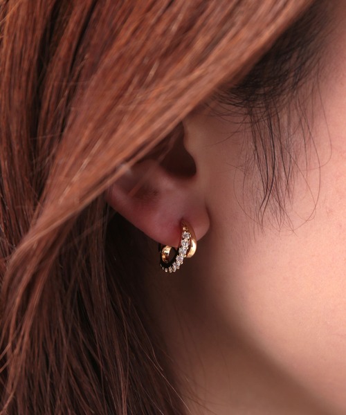 ■スタイルシンプルだけど華やかでオフィススタイルなどデイリーにも使え、フォーマルシーンでも活躍の多いアクセサリーです。■デザインストーンがあしらわれたフープピアスです。小ぶりながらも存在感を放つアイテムです。キャッチレスデザインで着脱しやすいのがポイント。■素材真鍮、ジルコニアポスト:ステンレススチールカラーゴールド/イエローゴールドコーティング(ニッケルフリー)カラーシルバー/ロジウムコーティング(ニッケルフリー)■サイズH:14mm W:15mm D:5mm重量:1g