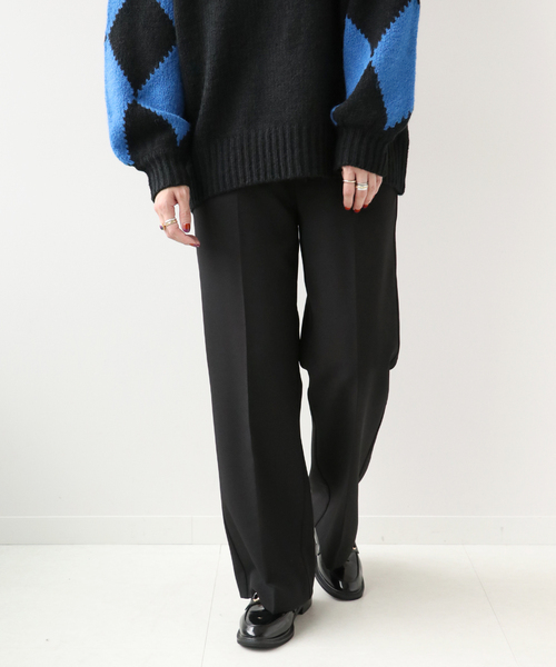 【2021AW】 B.C STOCK 存在感抜群のカラーパンツが登場! セミフレアの綺麗なシルエットに加え、センタープレスでさらに美脚見えが期待できます◎ フロントにはタックを入れずにスッキリとさせたことで、腰周りのボリュームを抑えスッキリと見せてくれます。 定番のブラックと、目を引くピンクとパープルというカラー展開も魅力。 暗くなりがちなAWのスタイリングを、ぐっと盛り上げてくれます。 膝上丈の半裏地が付いており、下着の線が響きにくいのも嬉しいポイント◎ 手洗い可能でご自宅でのイージーケアができる、デイリーユースにオススメの一枚です。 ********************** 透け感:なし 裏地:あり 伸縮性:なし 光沢感:なし 生地の厚さ:普通 ********************** 【スタッフ着用コメント】 《スタッフ staff.s》 身長:165cm/普段サイズ:S~M/着用サイズ:フリーサイズ サイズ感:ウエストは後ろのみゴムが入っており、幅広い体型の方に着て頂けます。 腰回りはやや細めです。 素材感:光沢感はなく、ややドライ感のある表地です。 シーズンレスで活躍しそうです! 着心地: 腰周りはやや細めですが、ウエストゴムなのでリラックス感のある着心地でした。 ********************** ※取り扱いについては、商品についている品質表示でご確認ください。 ※店頭・屋外での撮影画像は、光の当たり具合で色味が違って見える場合があります。商品の色味は、スタジオ撮影の画像をご参照ください。 モデルサイズ:H165 着用サイズ:フリー 本体:手洗い可能