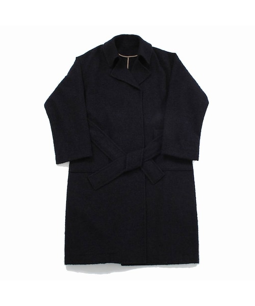 ATHA デザイナー齋藤英樹氏と森 大輔氏により、2018AWからスタートしたブランド「アタ(ATHA)」。ブランド名の<ATHA> (アタ) とはサンスクリット語で『今』を意味する言葉。“年齢や性差に縛られることのない服”というコンセプトのもと、美しく実用的なウェアを展開しています。コートやジャケット、トラウザーズなど立体で構成されるものを平面にて再構築し、平面的なパターンと直線的なカッティング。この平面的な洋服を立体的な肉体が纏った時に生まれる服と身体との「間」が独特のシルエットを形成し、性別やサイズを超えた、新しい洋服のカタチとして提案していければと考えています。平面パターンでユニセックス,ワンサイズ。男性と女性で着ることによってまるで違う表情を見せる服です。 「年齢/性差に縛られることのない服」 ワンサイズ,ユニセックスブランドATHA【アタ】のループツィードマキシコートです。ATHAを代表するプロダクト。ざっくりとラフに織られたループツィードがふわりとした着心地です。ネイビー地にブラウンの糸のメランジ織りが絶妙な色合いでこのコートに奥行を持たせています。ニットのような風合いでガウンのような雰囲気もあります。身長190cmの男性でも着用可能なほどのBIG SIZE。女性がオーバーサイズできても美しく見れるよう作られています。着丈120?、身幅70cm越えのシルエットはゆっくりと身体をつつむドロップショルダーシルエットです。生地量の多い造りながら非常に軽いのも特的です。ポケットも大きく内ポケットを含め収納力のあるつくりです。あまり荷物やカバンをもたずとも外へ行けます。前を開けるときはベルトをとってしまっても綺麗に見えるようにサイドにベルトループがついています。平面パターンで作られたシルエットは男性女性、身長の高低にかかわらずお使いいただけます。男女共用でお使いいただけます。