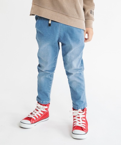 ウエストリブ仕様で「お着替えらくらく」! 伸び~る生地「プレミアムストレッチ」を使用し さらに楽ちん。 デニムはしっかり「ビンテージ感」を出して かっこよく。 「ロゴ入りのコード」もさりげないポイントです。 ----- 伸縮性:あり ポケット:あり ウエストゴム調整:可 ※モデル着用写真についてはイメージの為、実際の 商品とカラーや仕様が異なる場合がございますので、 商品画像をご覧ください。 ※商品の色味につきまして、お客様のお使いのPCの モニター環境により実際のカラーと画像の色味が 違って見える場合が御座います。 予めご了承の上、ご注文下さい。 ※店頭・外での撮影画像は光の加減で、 実際の商品より明るく見える場合が御座います。