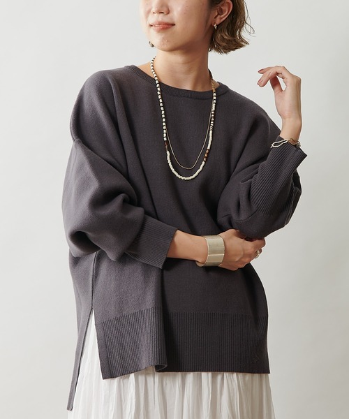 スウェット感覚で着られるクルーネックニット ・スウェットのように気負いなく着て頂けるデザインながら、上品な仕上がりが魅力の1着。 ・しっとりとした心地よい肌触りと程よい厚みで、合わせやすくつい手に取ってしまうニットです。 ・パンツ・スカートどちらとも相性◎カラーパンツと合わせたり、プリントスカートとの合わせもおすすめです! ・透け感:なし ・裏地:なし ・伸縮性:あり ・生地の厚さ:普通 ・光沢:なし<洗濯方法>手洗い洗濯可能 ------------------------------------- ・着用モデル オフホワイト、チャコールグレー、ネイビー:身長:158cm / 体型:普通 / サイズ:F ブラック:身長:160cm / 体型:普通 / サイズ:F -------------------------------------- 【商品のお気に入り登録】 ♡をクリックで気になるアイテムをお気に入り登録していただくと、 以下の通知を受け取ることができます。 ・入荷 ・再入荷 ・ラスト一点 ・セール対象時 【ブランドのお気に入り登録 】 新商品や再入荷、セール、クーポン配布などお得な情報を受け取ることができます。 -------------------------------------- ※商品の色味は、撮影場所や光の当たり具合などにより色味が異なって見える場合がございます。 また、お客様のお使いのPC・スマートフォン等のモニター環境などにより色味が異なって見える場合がございます。予めご了承の上ご注文ください。