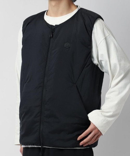 ノーカラーデザインが特徴のインナーベストタイプです。ジャケットとのレイヤードはもちろん、ベスト1枚としても活用でき、「秋、冬、春」の3シーズンと長く着れるアイテム。インナーとしても着用できるようにややタイトめのシルエットが特徴。アームホール・裾周りは縫製仕様により適度なフィット感、保温性を高める為、細部までデザインされています。表地にはアメリカの化学繊維メーカー「インビスタ社」が開発した、ナイロンの7倍もの強度を持つCORDURA® NYLON RIP STOPを使用。摩擦や引き裂きなどへの耐久性はもちろん、耐水性にも優れている特徴を持ち、デザインと機能性を高次元で融合。・ヒーティングデバイスにより、両胸・背中部分を加温→温度調節が可能。・表地に使用している撥水加工生地は、汚れがつきにくく水滴を弾きます。・炭素由来繊維の熱伝導性に優れたグラフェンを使用した中綿・裏地を採用。効率的な熱伝導により低温・低電力で最高のパフォーマンスを発揮。このグラフェンを使用した中綿は、空気をはらむ分量が多く、かさ高性に優れ、軽量かつ保温性に優れた特徴を持つ。・後ろネック部分の衿吊りにはブラックリフレクターをレーザーカットしたLANTERNロゴプリントテープを使用。暗い場所で光が当たるとブラックリフレクターが反射し、居場所を相手に知らせる役割を果たします。●ヒーティングデバイスウェアの特徴胸元の電源温度調整スイッチで温度調整ができる中綿ウェアです。ヒーティングデバイスは充電バッテリーを本製品のUSBプラグと繋げて作動するシステムで、スイッチは設定温度によって色が変わります。熱源であるヒート盤は炭素繊維から作られており、遠赤外線効果により体の芯から温めます。ヒーティングデバイス動作時間は充電バッテリー容量や設定温度によって変動いたします。●ヒーティングデバイスのご利用方法について1 : バッテリーを左脇の収納ポケットに入れ、USBプラグを差し込んでください。 ※充電バッテリーの残量と通電〔バッテリーの保護機能が作動していない事〕も確認してください。2 :胸元の電源スイッチを長押し(2~3秒)するとLEDが4色に点滅しヒーティングデバイスが作動します。 レッド(超高温)の点滅中は急速に加熱します。スイッチの操作を行わずに約5分経ちますと、自動的にパープル(中温)に切り替わります。3 : 電源を入れた後、スイッチを短く押すことでお好みの温度に変更ができます。(※温度で点灯色が変わります。)4 : 胸元の電源温度スイッチを長押し(2~3秒)するとLEDが4色に点滅しヒーティングデバイスが停止します。●充電バッテリーについてUSB出力ポート 出力電圧: 5V 出力電流: 2A以上ご利用可能時間目安(5000mAh)超高温(赤): 50℃/ 1.85H高温(黄) : 40℃/2.5H中温(紫) : 30℃/3.75H低温(青) : 20℃/7.5H(※上記表記は環境温度5℃の場合。)温度や時間は目安となります。絶対値ではありません。ATTENTION・クリーニング店でのウェットクリーニングを推奨します。詳しくは洗濯ネームをご覧ください。(※充電バッテリーは必ず取り外してください。)・衣服の上に着用していただく補助暖房衣料品として企画生産されたものです。それ以外のご使用は絶対にしないでください。・低温やけどには十分ご注意の上ご使用ください。・用途以外でご使用になった場合の故障・修理・事故・その他の不具合については一切の責任を負い兼ねますのでご了承ください。【LANTERN/ランタン】-テクノロジーを忍ばせた次世代のファッション-【都会と自然をシームレスに過ごす大人の為のアウトドアウェア】をコンセプトとし、都会的な日常とアウトドアシーンに対応する機能を兼ね備えたHEATING DEVICE WEARを提案しているブランドです。