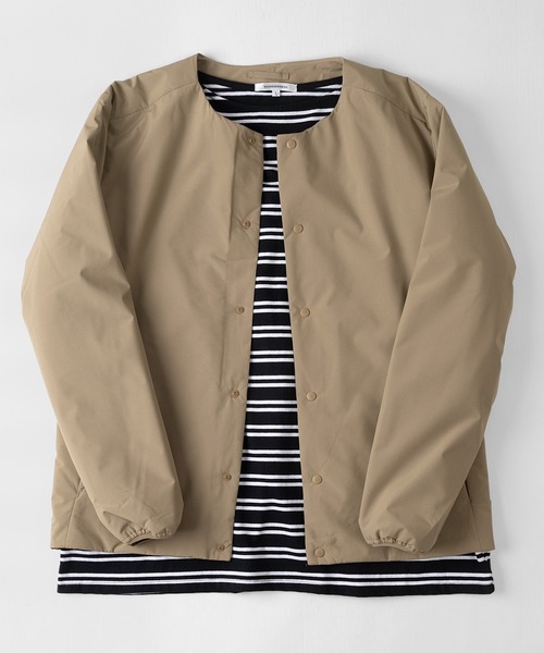 ノーカラー中綿 ボタンカーディガン/インナーアウター/ ALL WEATHER-TEX ■おすすめPoint 天候に左右されない高機能生地の「ALL WEATHER-TEX」を仕様している事で、軽量ながら強度が高く、撥水・防風・防花粉・紫外線に優れている。特に生地に染み込もうとする水の力を抑える効果が高く、耐水圧10000㎜(大雨にも耐えうる耐水圧)は機能面で見ても◎これからのシーズンには重宝する1枚。デザインはシンプルに仕上げられており秋口は、もちろんこれからの冬の季節まで羽織り、インナーとロングシーズンお使いいただけます。 カラーは定番のブラックに加え、ベージュ、オリーブとコーディネイトしやすいカラー展開。シルエットはインナーとして使用しても邪魔にならないウエスト部分が若干スリムになっているデザイン。ノーカラーデザインにより多くのトップスとも合わせやすい仕様。フロントもスナップボタン仕様により開け閉めがしやすく、カーディガンとして使用する事がおすすめです◎トレンドであり定番であるデザインはオーバーサイズにすることでストリート感もアップ◎サイドの縫い目が目立たないポケット、袖口のパイピング仕様などシンプルなデザインは、アウトドア、キャンプ、スポーツ観戦、散歩などのワンマイルウェアなど、どんな場面でも活躍する万能アウターの為、とても重宝される一着です。 ■着合わせPoint ダウンジャケット、マウンテンパーカー、ナイロンジャケット、スタジャン、モッズコート、トレンチ、ステンカラーコートなどと並んで今季も注目度の高いノーカラー中綿カーディガン。半袖Tシャツ、ロングT、プリントT、スウェット、パーカー、シャツ、カーディガン、ニットなどどんなアイテムの上に簡単に羽織ることができる万能アイテムです。カレッジスウェット、ニュアンスカラートップス、くすみカラーなどとコーデすることでトレンドの古着MIXスタイルに。オーバーサイズ、ビッグサイズのロゴトップスなどと合わせてストリートな着こなしに。無地シャツ、バンドカラーシャツ、タートルネック、モックネック合わせで、きれい目スタイルにも。チェックシャツやデニムシャツなどを合わせて王道なアメカジスタイルと、多くのトップスとの相性が良いアイテム。ボトムにシェフパンツ、ワークパンツ、ワイドパンツなど合わせて今風なスタイリングに。カーゴパンツ、ペインターパンツ、オーバーオールなど合わせることでワークな雰囲気に。スキニーパンツ、テーパードパンツ、スラックスなどとのコーデで都心的なスタイリングが完成。ユニセックスで着用でき、ペアコーデ、リンクコーデも新しいアイテムになる。小物にサコッシュ ショルダーバック バケットハット ワークキャップ ワッチキャップ コーデュロイ小物などと合わせればストリート感、アクセサリーのネックレス リング ピアスなどを合わせてコーデすると大人カジュアル感など小物により多くの演出もできます。大切な人へのプレゼントとしてもおススメのアイテムです。 ※クリーニングをする際は、必ずクリーニング店でのウェットクリーニングをお願い致します。ドライクリーニングは、生地の裏側に施したコーティングが剥離する恐れがあります。 ■お買い物をお楽しみ頂くために ◎購入ボタン横のハートマークをクリック! 完売カラーの再入荷通知、ラスト1点の通知、セールの通知も受け取ることができます(商品のお気に入り登録) ◎ショップのトップページにあるハートマーク【お気に入りショップに追加】をクリック! 新商品の入荷や再入荷等、いち早くブランドのお得な情報を受け取ることができます(ブランドのお気に入り登録) 【make a ray!/メイクアレイ!】 スタンダードなオリジナルアイテムとストリートから発信される旬なブランドをセレクション。時代の「今」を切り取り「旬」なトレンドをミックス。 日常のファッションに都会的な要素が溶け込むアイテムをプチプライスで提案するセレクトショップです。