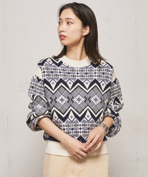 マストトレンドの"ジャガード柄"はレトロ感漂う配色で ・柄が入っているニットはアウターの下に重ねても可愛い ・モチモチとした気持ちのいい肌触り 【生地・デザイン】 もっちりと肌触りのいいニットはスウェットのような感覚で着られるので、防寒としておうち時間での着用にも向いています。リブは太め、サイズ感もベーシックながら、すこしゆとりのあるサイズ感なので、シャツやタートルなどインナーとレイヤードして着ても◎ 【コーディネート】 一枚で着ても、アウターに重ねてアクセントにしても映えるニットなので、王道カジュアルの王様"デニム"と"ローファー"でマニッシュにしてもいいですし、マキシスカートに合わせてブーツでも。 【お買いものをよりお楽しみいただく為に!!】 ▼商品のお気に入り登録(ハートマークをクリック) お気に入りアイテムの完売カラーの再入荷通知や、ラスト1点の通知、セールの通知も受け取ることができます。 ▼ブランドのお気に入り登録 新商品や再入荷など、クーポン配布などのお得な情報を受け取ることができます。