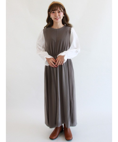 テクニック要らずでレイヤード風の着こなしが決まるドッキングワンピース。ウエストのブラウジングデザインで、楽な着心地ながらメリハリの効いたこなれムードをプラス。落ち着いたカラーで着回しもしやすく、アクセやシューズなどの小物で様々なアレンジも楽しめます。