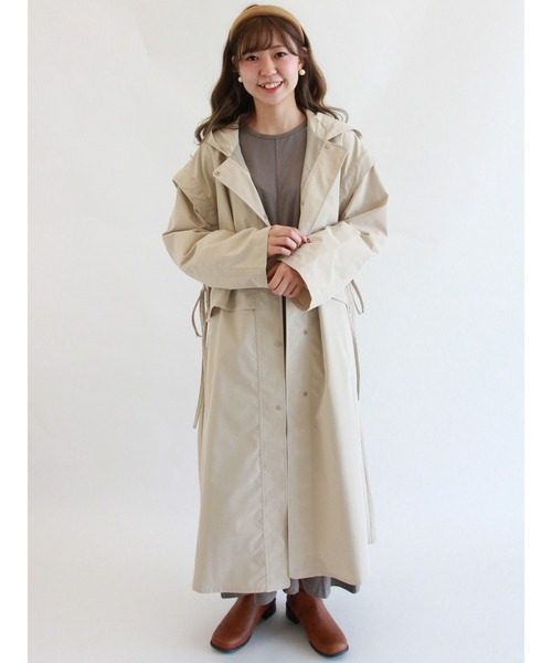 周りと差のつく、スタイリッシュなムードが魅力のコート。フェイクレイヤード風のデザインで着こなしに個性をプラスします。リボンがさりげなくフェミニンなアクセントを効かせる1枚。カジュアルにもきれいめにも活躍してくれる、今季注目のアイテムです。