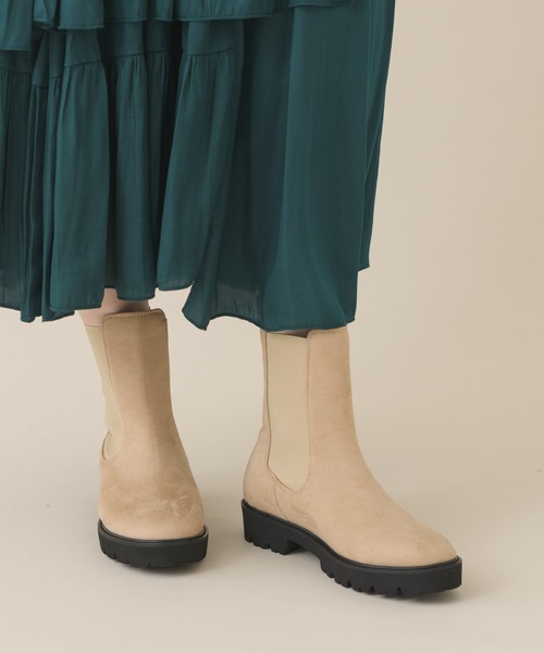 秋冬マストの定番ショートブーツ。足元をすっきり見せるミドル丈と安定感のあるソールで、お洒落と実用性が両立されたアイテムです。サイドゴアで着脱しやすく、足にフィットしやすいのもポイント。ベージュとブラックの2色展開で、日常のコーデに取り入れやすいです。ワンピースやスカートと合わせるのも良し。パンツをブーツインするのも◎です。