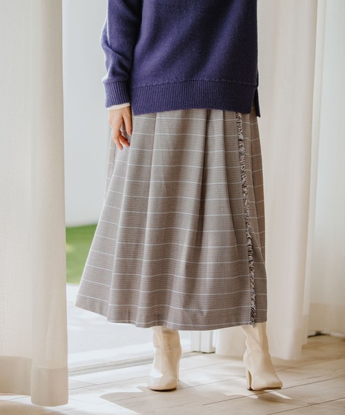 あったか裏起毛素材 甘すぎないフェミニンなロングスカート クラシカルなキルトスカートを、タックフレアの着やすいデザインにアレンジしました。 トラッドな印象のタータンチェックベースですが、ニコアンドらしい効かせ色のラインがポイント。 ハイウエストと、中縫いのタックデザインがウエストまわりをすっきりさせ、ボリュームのあるトップスにも合わせやすいです。 脇のファスナーで、ベルトデザインも楽しみつつ着脱も簡単な仕様がうれしい。 トレンドのブーツスタイルにも合わせやすいくるぶし丈で、コーデの幅が広がります。 ■FLEECY FABLIC この製品は裏起毛素材を使用しております。ウォーム感や、滑らかなはき心地をお楽しみください。 ※屋外の光や照明の当たり具合で、実際の商品の色味とカラー別画像の色味に違いが発生する場合がございます。 商品の色味はスタジオ撮影の詳細画像にてご確認ください。