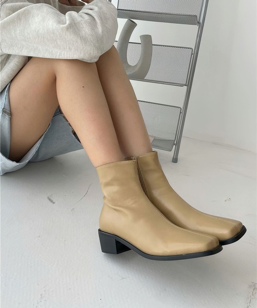 ミニマルな洗練されたスクエアフォルムと、 ウッドソールがモードな大人な印象を叶える スクエアトゥショートブーツ。 ■ Point ・モダンな艶感のフェイクレザー素材が洗練された大人スタイルを叶えるアイテム。 ・4.5cmのローヒールはフラットな履き心地で安定感があり長時間履いても◎ ・センターシームデザインとブラックのウッドソールがスタイリッシュな印象に。 ・内側ファスナーでさっと着脱しやすい1足です。 ■ Fabric ・品のある艶感とほどよいハリ感がモダンな印象なフェイクレザー。 ■ Coordinate ・ジャケットやトレンチコートなど大人モードなスタイルはもちろん、ビッグスウェットやニットに合わせたカジュアルスタイルにもオススメ。 ・ショートパンツやスカート、ワンピースなどいろんなボトムスにマッチする万能アイテム。 ・いつものコーデもスクエアトゥブーツを取り入れるだけで大人っぽくムードチェンジできます。 【me+em select (ミームセレクト) ZOZOTOWN お買い物ガイド】 ▼商品をお気に入り登録▼ 完売商品の再入荷やラスト1点の通知、セール開始時にお知らせ! ▼"me+em select (ミームセレクト) "をお気に入りブランドに登録▼ 新商品や再入荷など、ブランド最新情報をいち早くお知らせ! 是非、ご活用いただきお買い物をお楽しみください◎ ■他のキャンペーンにより、期間中に価格が変動する場合があります。 ■セールは予告なく終了させていただく場合もあります。 ■ご覧のモニター環境や撮影環境により実際の商品と多少色味が異なって見える場合がございます。 ご理解の程よろしくお願いいたします。