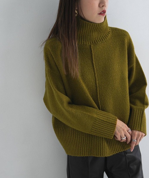 ゆるっとシルエットとモチモチな肌触りが抜群鮮やかなカラーがポイントのオフタートルニット【デザイン】オフタートルとセンターのラインデザインがポイントのカラーニット。スタイリングのアクセントにぴったりなカラーラインナップで、コーディネートを華やかにしてくれます。裾や袖口のリブを長めに設定することで、シンプルながらもアクセントに。目の詰まったしっかり糸なので真冬も安心して、ご着用いただけます。モチモチな肌触りも抜群。この冬、一枚あると便利なニットトップスです。【素材】もちもちの肌触りが病みつきに。シンプルだけどふんわり起毛感が特徴的なニット。もっちりとした肉厚感で保温性があり真冬でもあったか。インナーとしても活躍すること間違いなしの一枚です。さらっとした肌触りでストレスフリーな着心地です。【スタイリング】カットソーと合わせて裾から見せてカジュアルに、シャツと合わせて綺麗な印象にと、合わせるインナーによって印象が変わる一枚。一枚でざっくり着るのもおすすめ◎スカートでもパンツでも合わせやすい着丈設定で、着回し力抜群なニットです。※ご覧のモニター環境により、画像の色味と多少異なる場合がございます。-----------------------------透け感:なし生地の厚さ : 普通伸縮性 : あり裏地:なし光沢:なし洗濯:手洗い推奨-----------------------------※詳しいお手入れ方法は商品タグをご参照ください。