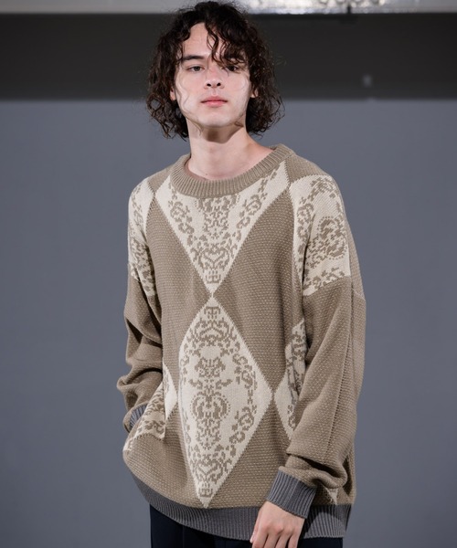 Casper John 2021 AUTUMN and WINTER Collection -runway- 【Argyle Batik Knit/アーガイルバティックニット】 ◆素材特性 非常に柔らかく保温性も高い素材を使用 チクチクもしにくくニットが苦手な方も快適に着用可能 適度な肉感で1枚でも重ね着でも着回しやすいです。 ◆シルエット 適度に全体をゆったりと設計したビッグシルエット 少しラフな雰囲気で着用可能 1枚で存在感もあり冬場でも嵩張らない絶妙なシルエットです。 ◆デザインディテール アーガイル柄とバティック柄をミックスした珍しいデザイン 古着のようなレトロな柄も雰囲気抜群 お洒落な雰囲気を簡単に出せる逸品でシンプルなアウターのインナーにも最適なカラーアイテムです。 《BRAND CONCEPT》 CREATIVE / MODE / URBAN をコンセプトに、 トレンドに敏感な都会人、常に新しいファッションを求める方 に、遊び心を追及した創造性の高いモードスタイルを提案する。