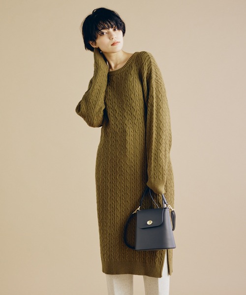 女性らしく着こなせるケーブル柄の入ったニットワンピース。ゆとりのある緩やかな女性らしいフォルムに仕上げてます。裾にはボトムスとのレイヤードにこなれ感を演出するスリット入り。タイツ合わせで1枚でさらっと着るのはもちろんですが、パンツや、フレアースカートとのレイヤードスタイルもお勧めです。 ・水洗い可 ■サンプル撮影商品■ こちらの商品はサンプルでの撮影となっております。実際の商品とは、商品情報(生産国、色味、上代、納期など)が変更になる場合がございます。予めご了承ください。