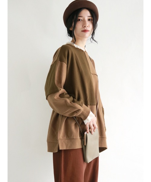 表情豊かなパッチワークデザインが個性をプラスするプルオーバー。 ゆとりのあるシルエットで着こなしやすく、抜け感のある印象に。 裏毛素材を使用しているのであたたかく、快適な着心地です。 シンプルなボトムスをコーデするだけでも着こなしがきまる、注目アイテムです。