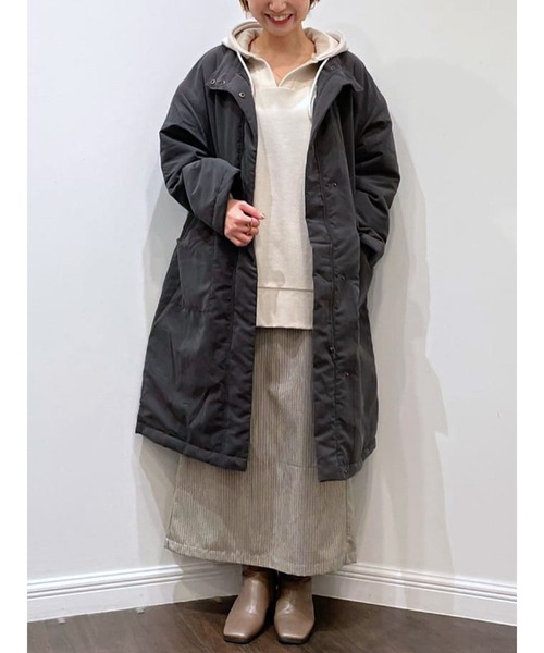 ミリタリーテイストのデザインが新鮮なムードをプラスするコート。 メンズライクなルックスで着こなしをスタイリッシュにみせてくれる1枚です。スタンドカラーが顔まわりにアクセントをメイクし、さりげなく上品な印象に。 ゆったりシルエットがこなれ感のあるコーデに導く、今季注目のアイテムです。