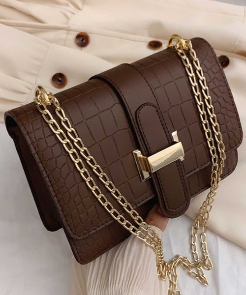 クロコ風フロントベルトショルダーバッグフロントのベルトデザインがポイントのクロコ風エコザーショルダーバッグ。大人っぽいゴールドのバックルがシックです。サイズは大き過ぎず、小さ過ぎずベストなサイズ感でお出掛けに必要な必需品は余裕で収納可能です。ショルダーベルトはゴールドチェーンを使用。カラーは全4色。素材:PU100%サイズ:縦13㎝, 幅18.5㎝, 奥行7㎝ 結婚式や二次会のオケージョンパーティーシーンや入学式、卒業式、謝恩会などのセレモニーシーンはもとよりデートや女子会などお呼ばれの席をリッチで煌びやかに彩るパーティードレスブランドです。シーズンのトレンドを程よくミックスし、特にカラーに関しましては、既存の概念にとらわれる事無く、新しいカラーを加え、カラーバリエーションを出来るだけ豊富にご用意しました。他とは被らないスタイルをお客様にチョイスしていただけるようご提案させていただいております。パーティードレス以外にもパーティーバック、パンプス等のバリエーションにも力を入れ充実させています。気軽に着飾って 自慢しましょう!※モニター・環境等により実際の商品と多少色味が異なって表示される場合がございます。あらかじめご了承ください。■お買いものをよりお楽しみいただくには◆商品のお気に入り登録完売カラーの再入荷通知、残り1点の通知、セール等値下げした時の通知も受け取ることができます。◆ブランドのお気に入り登録新商品や再入荷など、いち早くブランドのお得な情報を受け取ることができます。是非ご活用ください