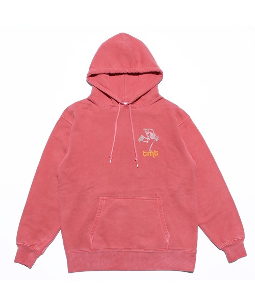 12.7ozの肉厚なHEAVY WEIGHT裏毛スウェット素材を使用。裏側のスウェットループ糸には通常よりも太番手が使われおり、ボリューム感のあるクラシックな佇まいです。製品後に顔料染め・ハードウォッシュ加工を施すことでヴィンテージさながらのフェード感を再現。80'sのCALIFORNIAスケーターをイメージしたグラフィックで配色もレトロで当時の空気感を漂わせています。