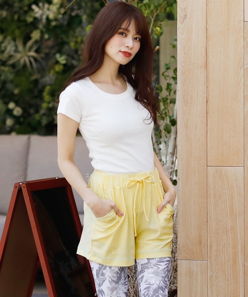 ★シンプルオシャレなUVショートパンツ ------------------------------------------------------------ 淡いカラーが綺麗なラッシュガード。さりげなく入ったラインがバイカラーになっていてオシャレ。 シンプルなので合わせやすい♪日々のジョギングやヨガ、アウトドアなど、アクティブなシーンで大活躍してくれます。 ★機能性もバッチリ! ------------------------------------------------------------ 便利なポケット付き。ウエストゴムで着心地楽ちんです♪ ウエストに紐が付いているので、よりフィットするように調整も可能です。 短めの丈で水着やタイツとの相性バツグン! 畳むとコンパクトなので、荷物になりません。 ★素材感 ------------------------------------------------------------ さらっとした軽い生地で、着心地バツグン。紫外線遮蔽率50+でしっかりとUVカットしてくれます。 ◆素材:ポリエステル87%、ポリウレタン13% ◆伸縮性:あり ◆裏地:なし ◆ファスナー:なし ◆透け感:あり ◆付属品:なし ◆カラー:イエロー×ミント/ミント×イエロー/ホワイト×ミント