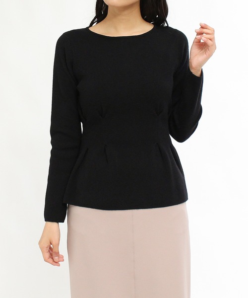 総針編みのしっかりとした生地感で秋冬シーズンにぴったりなニットプルオーバー。ウエストにタックを施してあり、一枚でサマになるペプラムシルエットのデザインニットです。 ハイウエストのバランスは着るだけでスタイルアップが叶うトップスです。 スカートはもちろん、パンツコーディネイトにもおすすめ◎