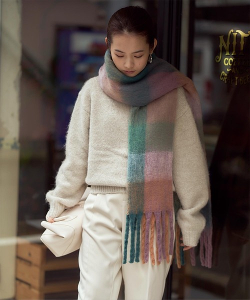 ボリューム感のある素材で暖かく小顔効果も抜群のチェック柄マフラー。・太めのフリンジがポイント。・さっとかけるだけでもコーディネートにアクセントを加えてくれます。※当商品は機械による生産の過程上、どうしても"生地を織る際の糸の継ぎ目"や多少の"ほつれ"、他繊維の"混紡"、また、形やサイズや柄に多少の"誤差"が生じる場合がございます。※サイズは、実寸サイズを測っているため多少誤差がでる場合があります。製造工程の関係上、各採寸箇所実寸(平置き)より【約-3cm~+3cm】程度は誤差の許容範囲とさせて頂いておりますので、予めご了承くださいませ。※メーカーより密封状態で入庫し、検品時に再度袋詰めを行っておりますが、素材により染料等の臭いが強い場合がございます。※発送上の状態によって商品がシワになる場合がございます。※商品により色落ち・色移りがある場合がございますので、品質表示をご確認の上、お取り扱いにご注意くださいませ。