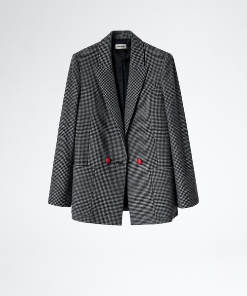ハウンドトゥースのシックなジャケットに左右対称に赤いボタンを付けたZADIG&VOLTAIREのエッセンスが凝縮されたデザインクラシカル印象のアイテムでスタイリッシュなLOOKを完成させて下さい。 ※コンパクトなシルエットのジャケットです、ボトムラインも細めの物をチョイスして頂くとバランス良くまとめて頂けます。