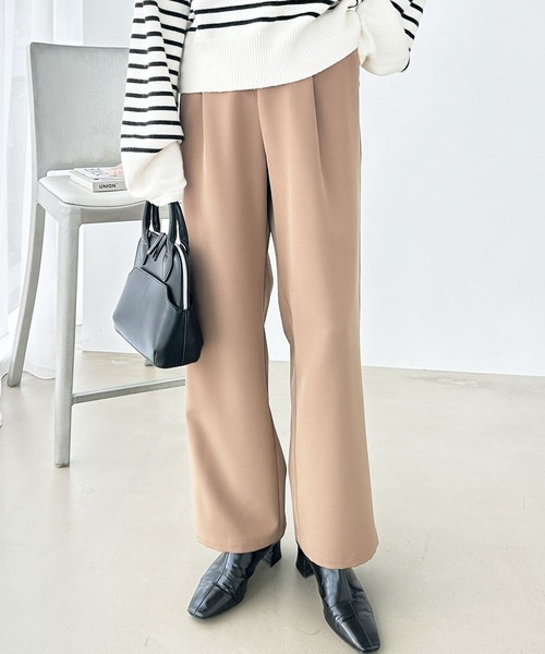 はき心地の良さも美脚見せも譲れない! 大人のストレッチイージーパンツ 〇ストレッチ素材で動きやすい 〇ストレートシルエットで美脚見せ 〇キレイ見えする上品素材 ■デザイン 美脚見せを叶えるこだわりのストレートシルエット。 フロントはスッキリ見せながらもウエスト後ろはゴム使いでこっそり楽チン♪ ウエスト内側は紐リボン入りでサイズ調節しやすい◎ 楽なのにキレイ見えする大人のマストアイテムです。 ■素材 のびのびストレッチ素材で快適なはき心地。 動きやすく脱ぎはきも楽ラク♪ お家で洗えてお手入れしやすいのも嬉しいポイント。 …………………… 透け感:なし 厚さ:普通 伸縮性:あり(たてよこストレッチ) 裏地:なし …………………… ■コーディネート キレイ見えする素材&シルエットで通勤スタイルにぴったり◎ パーカーやカットソーと合わせたカジュアルコーデもオススメ。 ON・OFF問わず様々なシーンで活躍するイージーパンツです。 ● 裏地無 ● 全方向ストレッチ ● ウエスト後ゴム使い ● ウエスト紐リボン入り ● ポケット有 * 股下64cm 洗濯:洗濯機使用可 <価格改定のお知らせ> 2022/07/27より、生産費、原材料費の高騰により価格改定をさせて頂きます。 ご了承下さいますよう、お願い申し上げます。 --------------------------------------------------------------------- ※サイズ寸法は実際の寸法と多少の誤差がある場合が ございます。 ※ご覧いただいているPC/WEB環境や撮影環境により、 多少色味が異なって見える場合がございます。 【お買い物をよりお楽しみいただく為に】 ▼商品のお気に入り登録をおすすめします♪ 『♡をクリック!』 完売カラーの再入荷やラスト1点の追加、 セールの際の通知を受ける事ができます。 ブランドのお気に入り登録もご一緒にお願い致します。 ---------------------------------------------------------------------