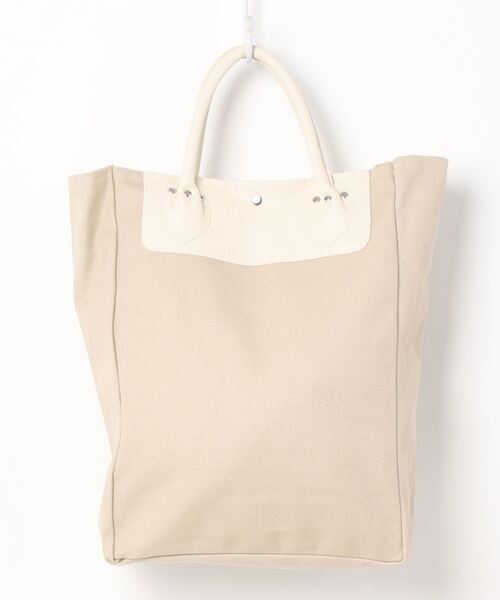 シボ感のある合皮ハンドルがモダンなアクセントに映えるキャンバストートバッグ。A4も入るサイズと縦長のフォルムで、書類やファイルなどもすっきりお収納することができます。鍵やICカードなどの小物がすっきり収納できる内ポケット付きなのも嬉しいポイント。デイリーにはもちろん、通勤通学などにも活躍してくれるアイテムです。
