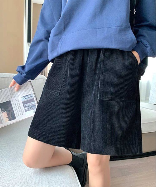 ▪POINT秋冬に欠かせないコーデュロイ素材の、ハーフパンツの登場。秋冬の季節感をしっかり演出し、カラーは秋冬にピッタリの深みカラー。温かみがあり、着心地もよく今季1枚は持っていたいアイテムです。ウエストはゴム仕様で無駄なデザインがなくすっきりシンプルで履きやすさも着心地も◎カジュアルにもキレイめにも着こなせる、落ち付いたデザインで使いやすい!ワイドシルエットで、美脚効果も◎ゆとりもしっかりあって、幅広い体型の方にお召しいただけます。▪STYLINGベーシックなデザインのショートパンツは、一枚あると重宝するアイテム。シャツやブラウスでフェミニンでも、ロンTやスウェットでカジュアルスタイルでも◎合わせ方次第で雰囲気がガラっと変わり、幅広い着こなしが叶います。ニットと合わせると、一気に秋冬を感じるコーデに。スニーカー・アンクルブーツ・ローファーはもちろん、ジャケット&ロングブーツとの合わせで、トレンディな着こなしがおすすめ。シルバーアクセサリーや、キャップなどの小物類との相性も抜群です。韓国ファッションが好きな方は、必見です!こちらの商品はセレクト・インポートアイテムのためサイズ感が日本規格のものとは異なります。お買い上げの際にはサイズチャートでご確認頂きますようお願いいたします。【お買い物をよりお楽しみいただくために】●商品のお気に入り登録(ハートマークをクリック)完売カラーの再入荷や、ラスト1点のお知らせ、セール情報などの通知を受け取ることができます。●ブランドのお気に入り登録新商品や再入荷など、お得な情報をいち早く受け取ることができます。●最短で翌日お届け商品をカートに入れた後、注文内容の確認ページで「即日配送」を選択していただければ、最短でご注文した翌日にお届け致します。是非ご利用頂き、お買い物をお楽しみください。