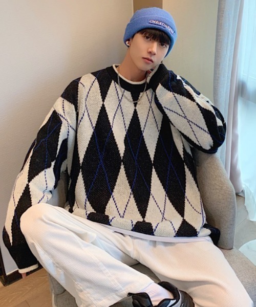 今旬の総柄ニットがオーバーサイズで新登場!グレー、ブラウン、ネイビーの3色カラー展開。落ち着きのあるネイビーは大人っぽい雰囲気で、グレーはカジュアル、ブラウンはお洒落な配色でストリート感がありどの色も着回しに便利な定番カラー展開となっております。クラシックなダイヤモンド柄のニットセーターは秋冬の定番で、着こなしがしやすいデザインです。ドロップショルダーでビッグシルエットになっていて、ゆとりのあるサイジングがトレンド感満載!デニムやジーンズ、チノパン、ワイドパンツなどを合わせたストリートカジュアルコーデおすすめです。センタープレススラックスやジョガーパンツに足元はローファーやブーツを合わせて大人カジュアルコーデも◎アクセサリーやキャップ、ニット帽、ベレー帽などの小物とも相性抜群。流行りの肩掛けや斜め掛けにも使えるので今の時期1枚持っておくと◎インナーにタートルネックやシャツ、ロンTをレイヤードしてもオシャレに着こなせます。ユニセックスアイテムとなっているため、女性も着用いただけます。プリーツスカートやタイトスカート合わせや、デニムやワイドパンツを合わせたメンズライクコーデも◎韓国・韓流ファッションが好きな方はぜひ!!こちらの商品はセレクト・インポートアイテムのためサイズ感が日本規格のものとは異なります。お買い上げの際にはサイズチャートでご確認頂きますようお願いいたします。【お買い物をよりお楽しみいただくために】●商品のお気に入り登録(ハートマークをクリック)完売カラーの再入荷や、ラスト1点のお知らせ、セール情報などの通知を受け取ることができます。●ブランドのお気に入り登録新商品や再入荷など、お得な情報をいち早く受け取ることができます。●最短で翌日お届け商品をカートに入れた後、注文内容の確認ページで「即日配送」を選択していただければ、最短でご注文した翌日にお届け致します。是非ご利用頂き、お買い物をお楽しみください。