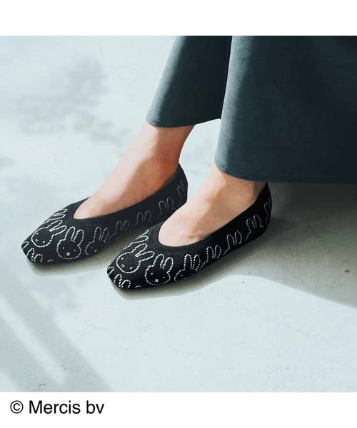 遊び心と特別感! ぺたんこなのにすまし顔。 季節感もちょうどいい、ニット素材のミッフィー柄パンプス。 驚くほど軽く、やわらかく足にフィットするから、履き心地にストレスがなくご機嫌。 ゆとりのあるスクエアトウが、きちんと見えにもひと役! 合わせやすいブラックカラーなので、きれいめワンピのおよばれスタイルから、カジュアルなデニムまで幅広く活躍。 歩きやすさ重視なスニーカー派のおしゃれさんにもオススメです。