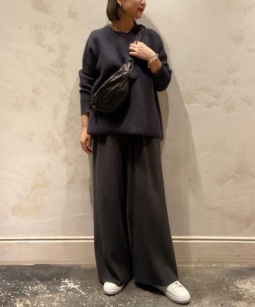 表地はラクーン混のふんわりした肌触り。 裏はポリエステル地が出るようにし、毛羽立ちを抑え、肌に触れる部分の質感を変えています。 サイドにはスリットを入れ、前後差のある着丈で前だけボトムにタックインする着こなしもおすすめ。 ベージュとチャコールグレーの二色展開予定です。【スタッフコメント】IKENOMOTO自由が丘160cm表がラクーン生地でふんわり暖かなのですが、裏はポリエステル生地になっているためチクチクせず着心地抜群です。シンプルなニットはボトムを選ばず着まわせるので選びました。スリットが入っていたり、後ろもデザイン性がありおしゃれに見えるのがお気に入りポイントです。DAZAI青山166cm【knit】着用サイズ:F寒くなると着たくなる、毛足の長いニット。でもチクチク感が気になって着れない、というお話をよく聞きます。こちらのニットは表は毛足の長すぎないラクーンの生地、裏はポリエステルの生地になっているのでチクチクしにくいデザインに。前後差のある着丈がバランス取りやすく、襟も開かないのでカジュアルに着ていただけます。伸縮性:あり透け感:なし裏地 :なし(ダブルフェイスなのでチクチクしません)