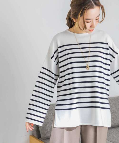 【シーズンレスで人気のパネルボーダーがニットで登場!】 カットソーで定番のパネルボーダーをニット素材に落とし込んだ1枚。薄すぎず厚すぎずな程良い肉感の生地で、今からの時期、カットソーに次いで冬まで活躍してくれます。開きの大きすぎないボートネックですっきりした印象ながらも、お袖はゆるっと太めのシルエットに仕上げており、バランスがきれいな着こなしに仕上がります。 POINT ・腰回りが隠れる安心感のある着丈 ・ラインを拾わないゆとりのあるサイズ感 ・秋、初冬から活躍の軽い着心地 COORDINATE スカートにもパンツにも合わせやすい、カジュアルな万能ニット。シャツやハイネックトップスをレイヤードしても◎肩から掛けてスタイリングのポイントにもおすすめです。 ※この商品は、摩擦(特に湿った状態での摩擦)や、汗、雨などで濡れると、他の衣料や下着(特に白物)に色移りする場合がありますので、充分ご注意ください。 ※ピリング(毛玉)ができやすい素材を使用しています。ピリングができた場合は、引っ張って取ろうとせず、ハサミや毛玉取り器などで、ひとつひとつ取り除いてください。 ※その他お取り扱いに関しましては、商品に付属のアテンションタグをご覧ください。 ※商品画像は、光の当たり具合やパソコンなどの閲覧環境により、実際の色味と異なって見える場合がございます。予めご了承ください。 ※商品の色味の目安は、商品単体の画像をご参照ください。 ----------------------------- 透け感 : ややあり(OFF×D.NVYのみ) 伸縮性 : ややあり 裏地 : なし 光沢 : なし ポケット : なし ----------------------------- ▼お気に入り登録のおすすめ▼ お気に入り登録商品は、マイページにて現在の価格情報や在庫状況の確認が可能です。 お買い物リストの管理に是非ご利用下さい。